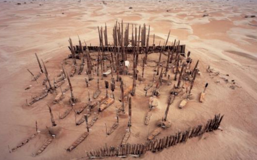 图1. 本研究中的小河墓地的俯瞰图(由新疆文物考古研究所提供),以及本研究中样本采集的考古遗址的地理位置。