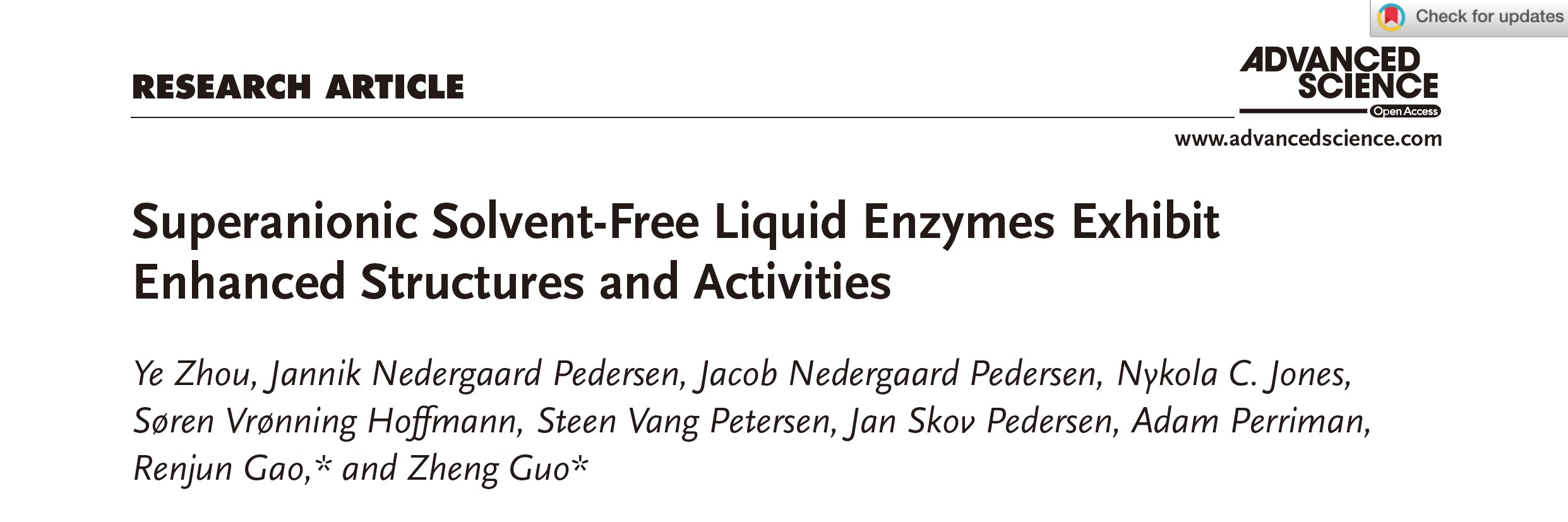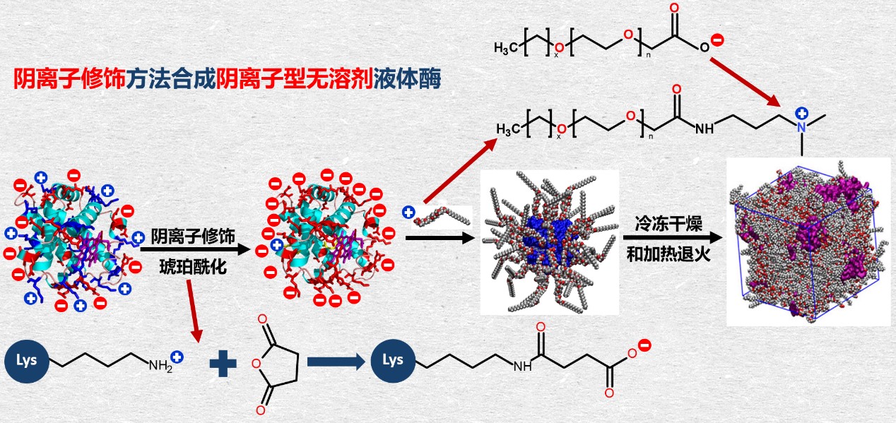 太阳成集团tyc234cc分子酶学工程教育部重点实验室高仁钧教授团队与丹麦奥胡斯大学郭诤教授团队合作,提出了新型无溶剂液体蛋白(酶)的设计策略。将枯草杆菌脂肪酶LipA先离子化修饰,再与离子聚合物交联,成功合成液体酶,使常温酶具备了超嗜热酶的催化特性,该成果在生物催化中颇有应用潜力。相关研究内容已于近日以题为"Superanionic Solvent-Free Liquid Enzymes Exhibit Enhanced Structures and Activities”发表于Advanced. Science. (2022, 2202359). https://doi.org/10.1002/advs.202202359