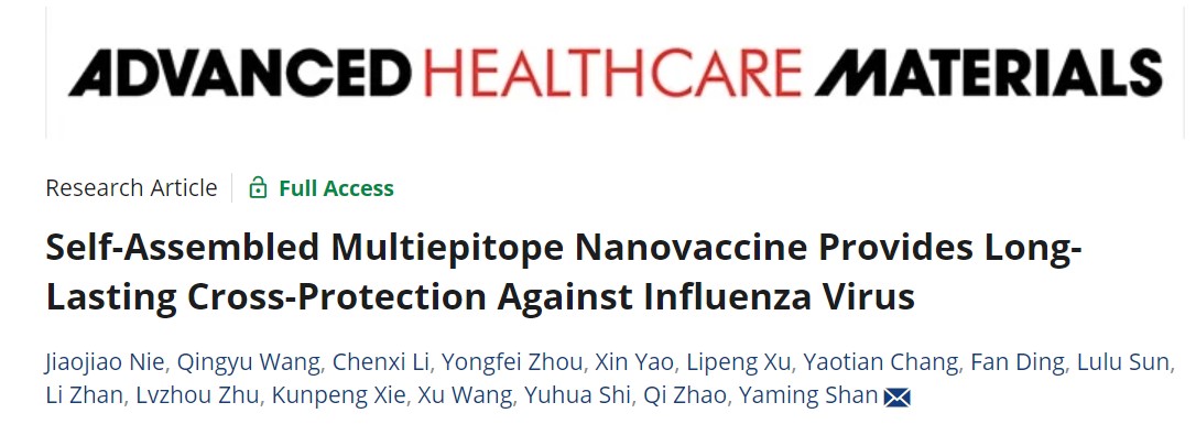太阳成集团tyc234cc艾滋病疫苗国家工程实验室单亚明教授课题组联合澳门大学赵琦教授课题组,在流感多表位纳米疫苗研究领域取得新进展。相关研究内容以“Self-assembled Multiepitope Nanovaccine Provides Long-lasting Cross-protection against Influenza Virus”为题,于2023年11月20日在学术期刊《Advanced Healthcare Materials》正式发表。