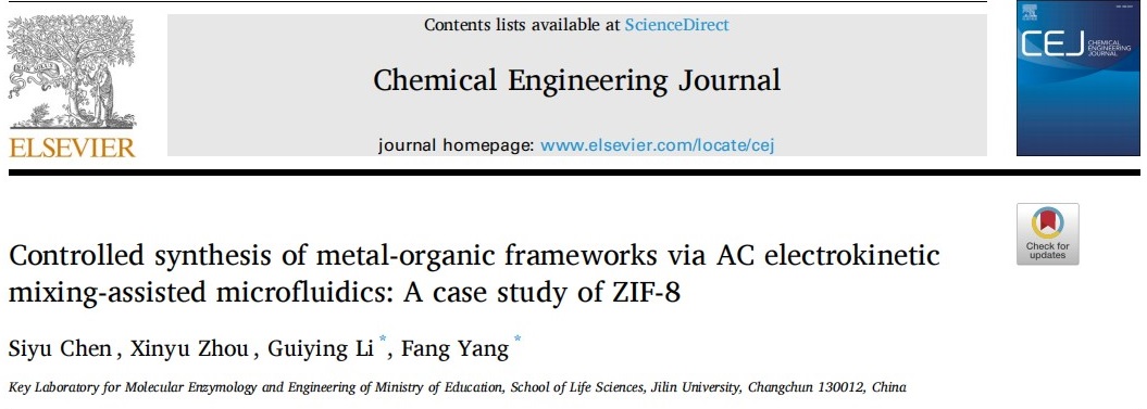 太阳成集团tyc234cc分子酶学工程教育部重点实验室李桂英教授、杨方教授团队在基于介电泳的微流控液体活检以及可控合成功能MOFs材料研究中取得重要进展,相关研究内容已于近日分别在线发表于Biosensors & Bioelectronics、Chemical Engineering Journal杂志。