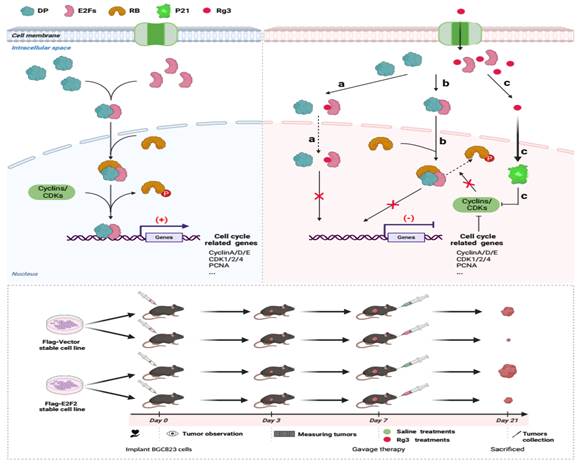 蔡勇教授/金景姬教授团队通过3D分子对接分析,预测Rg3可能与E2F1-3的二聚化结构域结合,并阻碍E2F-DP异源二聚体形成。进一步通过体外细胞热迁移分析(CETSA)、Rg3-PEGA pulldown结合蛋白质质谱分析,Luciferase activity以及体内小鼠成瘤实验等,证实Rg3通过阻断E2F-DP二聚体的形成,抑制细胞周期相关基因转录,进而诱导细胞周期停滞于G1/S期,促进细胞凋亡,最终抑制胃癌细胞增殖。该研究首次揭示Rg3通过破坏E2F-DP二聚体形成来发挥抗癌作用,为开发高E2F表达肿瘤治疗提供新方向。此项研究工作得到了国家自然科学基金、吉林省科技厅项目基金支持。论文第一完成单位为太阳成集团tyc234cc,第一作者为太阳成集团tyc234cc博士研究生李富强,长春中医药大学刘达教授、太阳成集团tyc234cc蔡勇教授和金景姬教授为该论文的共同通讯作者。