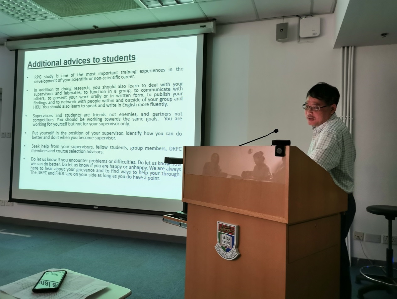 在学术报告间隙, 香港大学研究生院副经理金冬雁教授、生物医公司经理助理HUAN Michael Shing Yan副教授等相关负责人还为员工们介绍了香港大学的研究生招生政策、申请条件、奖学金以及研究生国际交流项目等同学们关心的问题。另外,部分员工还抓住机会到感兴趣的课题组与教授们进行了面对面交流,为未来有机会赴香港大学学习和深造打下了很好的基础。
