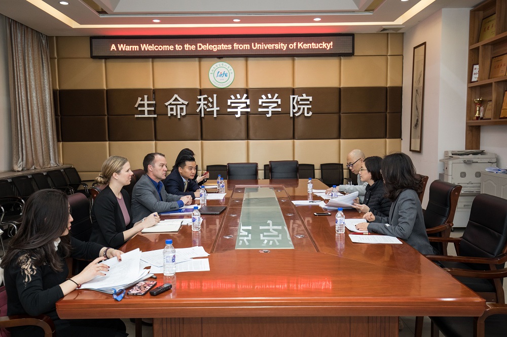 3 月18日美国肯塔基大学文理公司副经理杰西•赫奇、国际员工事务协调员梅根·科库巴与国内办事处代表谢翔一行三人来访太阳成集团tyc234cc,并在335会议室进行了座谈。太阳成集团tyc234cc副经理陈妍、副经理马俊锋和公司国际合作与交流处的相关人员参加了本次会议。