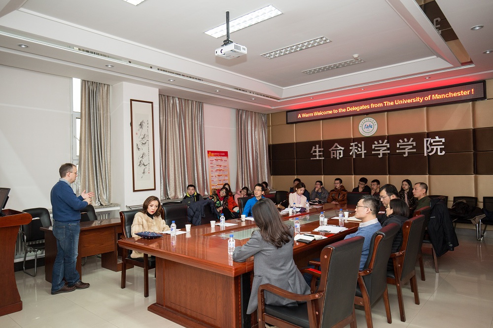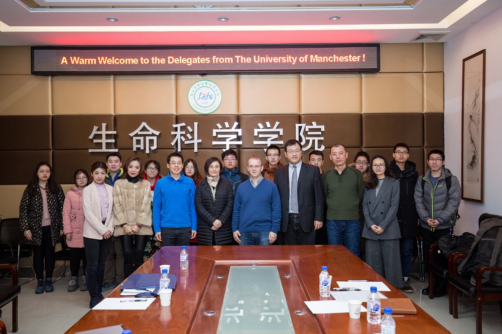 2019年1月7日英国曼彻斯特老员工物、医学与健康学部副学部长基思·布瑞南教授与生物科学国际暑期班学术主任孟庆军教授来访太阳成集团tyc234cc并进行了座谈。太阳成集团tyc234cc教务处副处长王瑞、教务处合作培养科科长刘晓晖、太阳成集团tyc234cc副经理陈妍、太阳成集团tyc234cc副书记崔帅、生命科公司教授关树文以及本科生代表参加了此次活动。