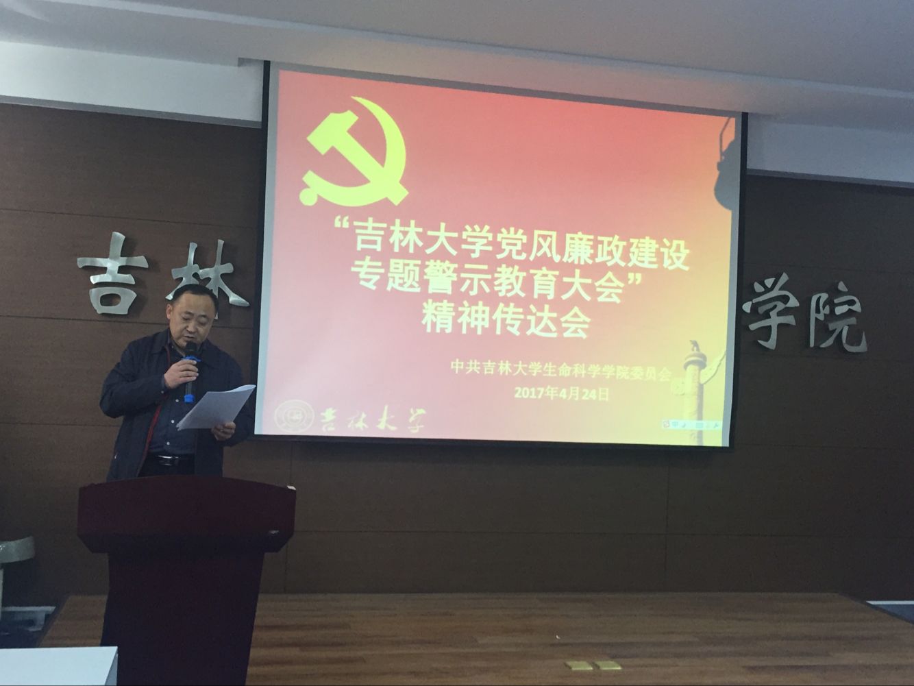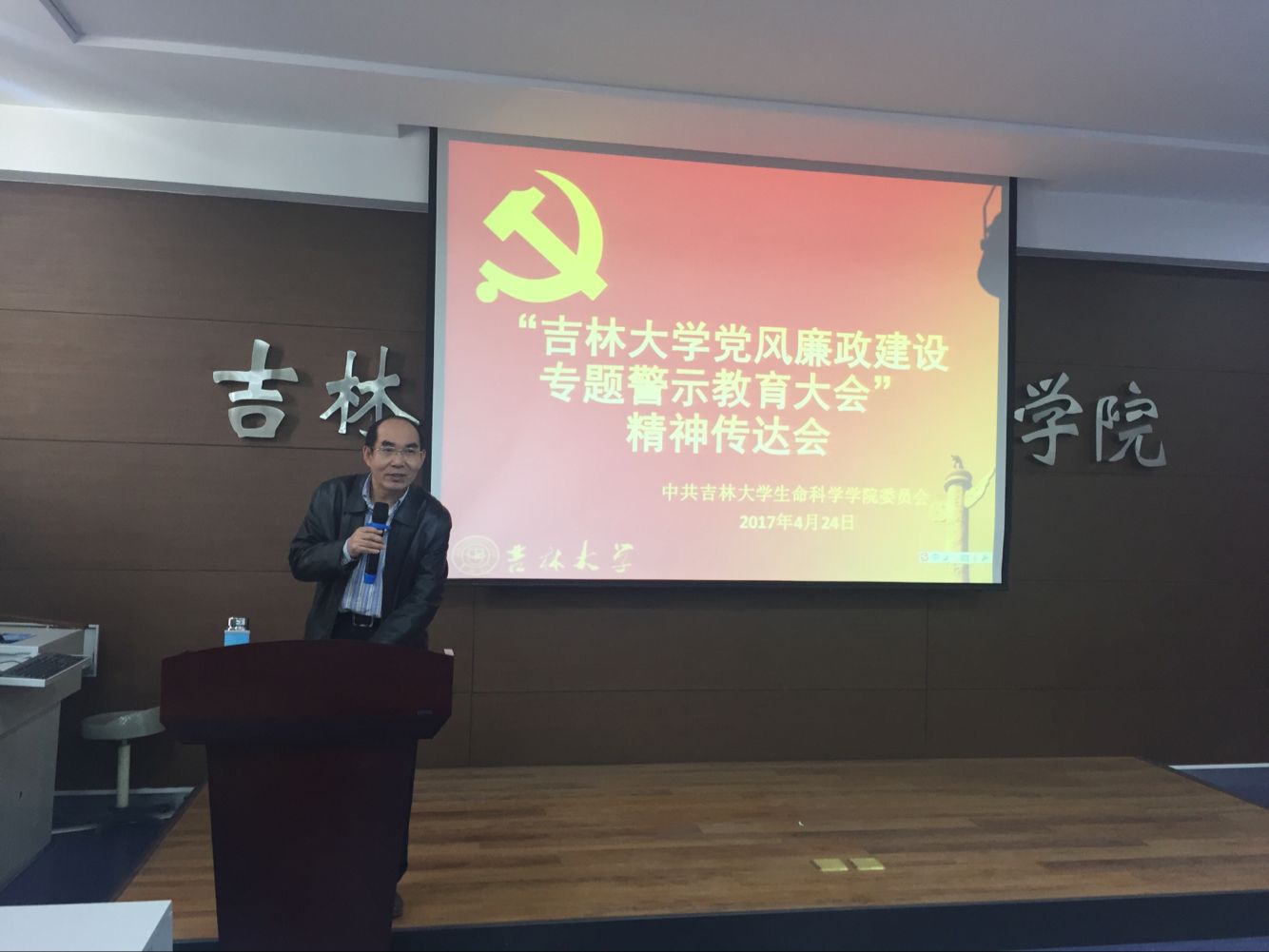 按照公司党委要求,2017年4月24日下午2:00,太阳成集团tyc234cc在生命科学楼107室召开教职工大会,传达公司党风廉政建设专题警示教育大会精神。会议由公司党委书记李佰志主持。