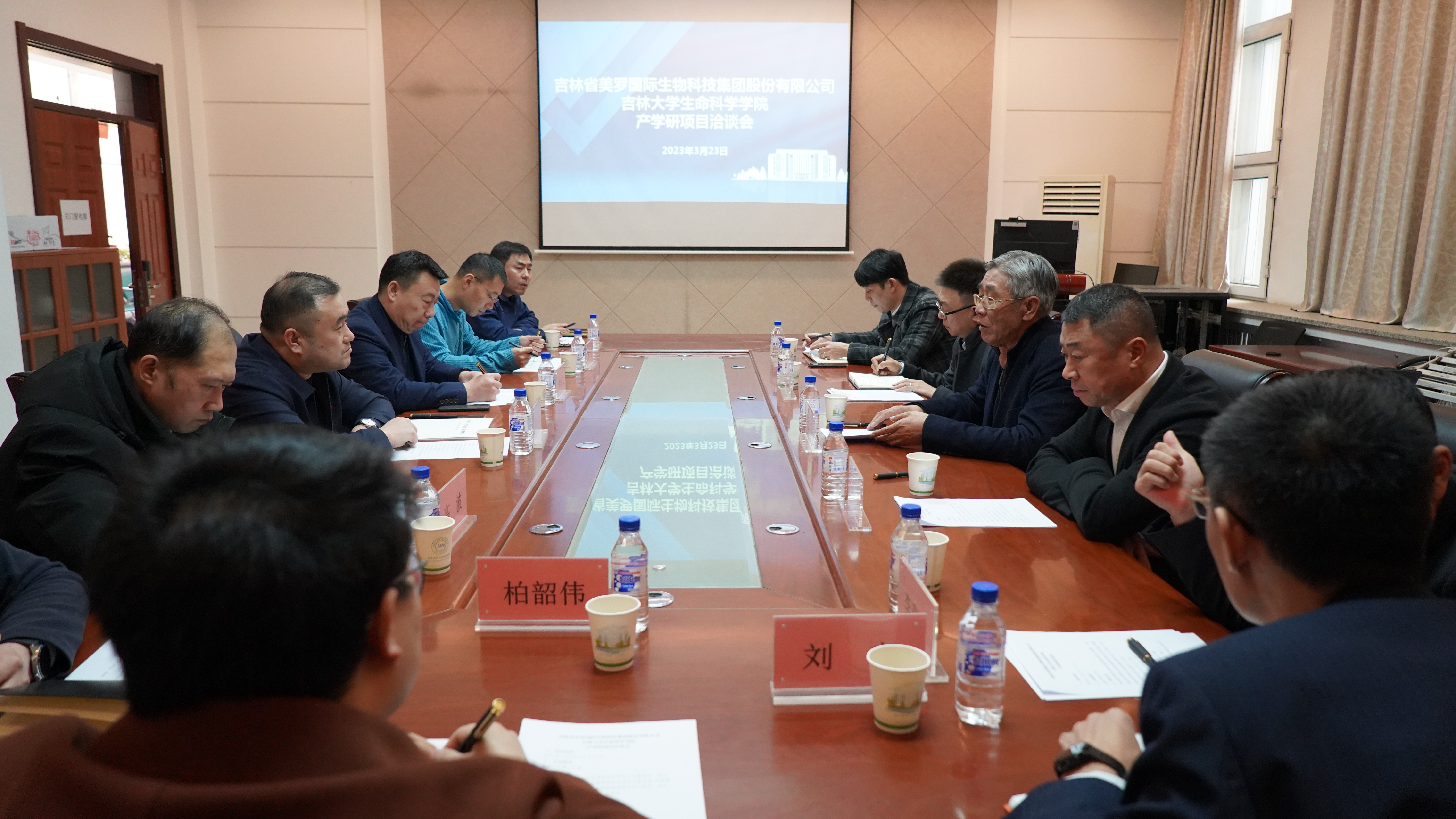为深入贯彻落实太阳成集团tyc234cc关于深化校地校企合作的决策部署,促进产学研深度融合,进一步发挥太阳成集团tyc234cc助力吉林全面振兴全方位振兴,3月23日,吉林省美罗国际生物科技集团股份有限公司到访太阳成集团tyc234cc开展产学研项目调研洽谈,交流座谈会于太阳成集团tyc234cc335会议室召开。吉林省美罗国际生物科技集团股份有限公司董事长夏历、副总裁李春雁、副总裁张伟、工程师刘辛,太阳成集团tyc234cc国内合作处副处长王浩天、工作人员祁心,生命科学公司党委书记白宇、党委副书记林相友、副经理崔帅,太阳成集团tyc234cc生物药学系主任高波、生物化学系主任邢述、中草药育种与栽培国家地方联合工程实验室教师赵伟、博士研究生柏韶伟参加会议。会议由白宇主持。