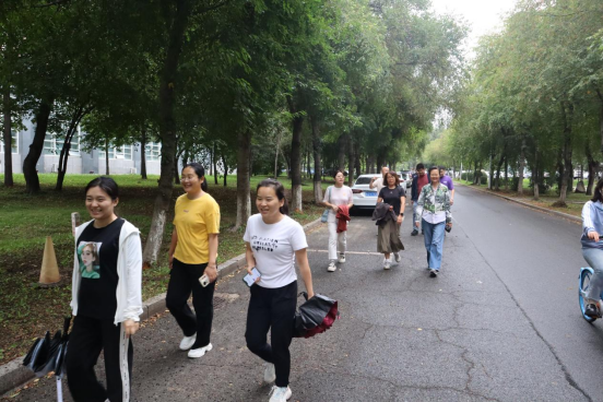 以生命科学楼为起点,途经东湖、东门、五月花广场、逸夫教学楼、唐敖庆楼,最终抵达生命科学楼,全程约4公里,徒步时长约1小时。行走中,大家精神饱满,热情高涨,和谐的气氛、行进的脚步、有序的队伍、流淌的汗水,形成了一道靓丽的风景线。教师徒步队伍经过处,留下一串串欢声笑语,将团结奋进、拼搏向上的精气神充分展现。