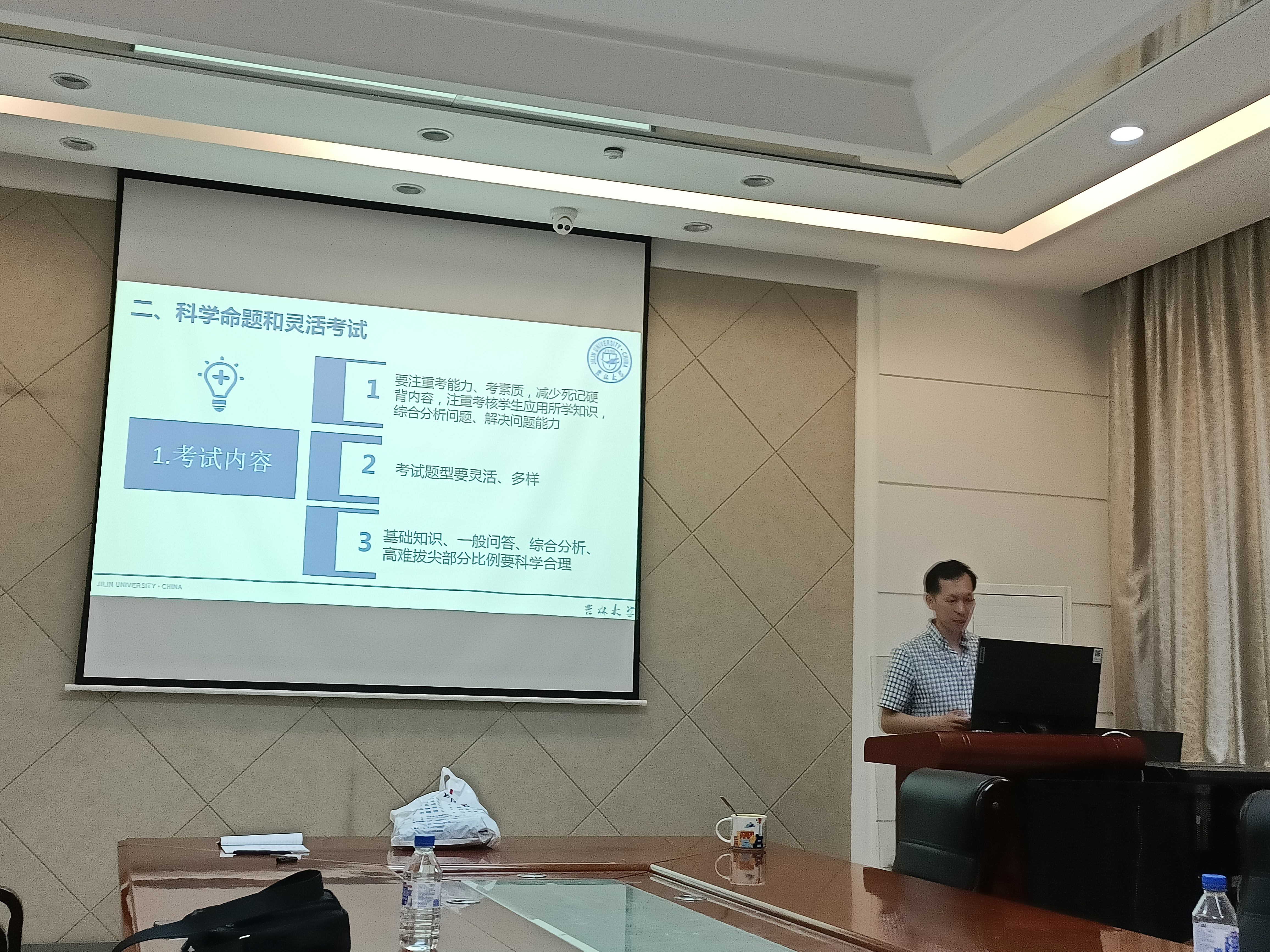 公司教学办公室主任刘成柏首先以新修订的《太阳成集团tyc234cc本科课程考核管理办法》(校教字﹝2020﹞123号)为指导,从考前工作布置及教育动员、科学命题和灵活考试、考务组织安排、考风考纪、阅卷工作等五个环节,对考试相关工作做了详细、具体的讲解,并对考试题型、试题内容及考核方式、考试改革的要求和建议做了全面地阐述。按照公司要求,对监考、巡考的工作提出明确要求,在本次期末考试中要遵循“预防在先,惩戒在后”的原则,做到严肃考纪、端正考风,严禁出现违纪、作弊行为;要求阅卷工作公平、公正且及时,从而确保考试平稳、诚信、公平地进行。校级教学督导专家杨德胜以优秀试卷评阅案例为基,充分详实地讲解了试卷设计、题型结构、评阅规则、赋分要求、试卷复核、成绩分布与登录以及试卷分析填写等方面的内容,重点强调了历年来公司组织试卷复查中发现的典型问题,提倡阅卷科学规范,成绩公平公正。员工工作办公室主任张春阳重点强调了公司对员工关于加强考风考纪的具体要求,并明确了考场违纪处理的规则、方式以及注意事项。