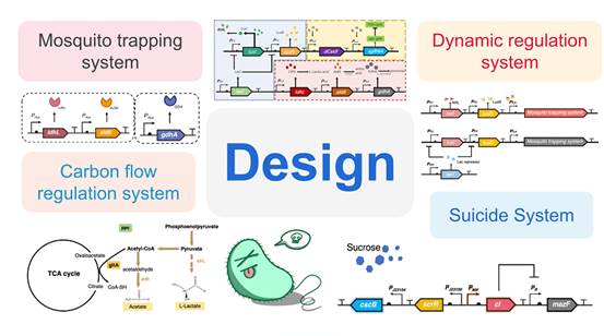 2021年Jilin_China团队由太阳成集团tyc234cc陈妍教授、侯阿澧副教授、詹杨副教授及孙博高级工程师四位导师共同指导,队员由来自太阳成集团tyc234cc、电子科学与工程公司及通信工程公司的15名同学组成。参赛题目为“Mosquiet”,该项目设计了一个基于动态调控策略的大肠杆菌生物产酸产氨诱蚊杀蚊装置,其核心思路是通过基因工程改造大肠杆菌,使其不断生产能够吸引蚊子的气味小分子——乙酸、L-乳酸、氨气,再通过电网杀死被吸引过来的蚊子。考虑到在家庭场景中的使用,团队专门设计了可以让工程菌转运并代谢蔗糖的蔗糖代谢系统。Mosquiet作为面向人类日常生活的参赛项目,拓展了杀蚊灭虫的新方法,对于科学灭蚊、环境保护具有积极意义。此外,今年的Jilin_China开展了多项社会实践及人文调查。团队还自主设计了供项目落地实施的硬件装置,最终以建模的方式呈现。