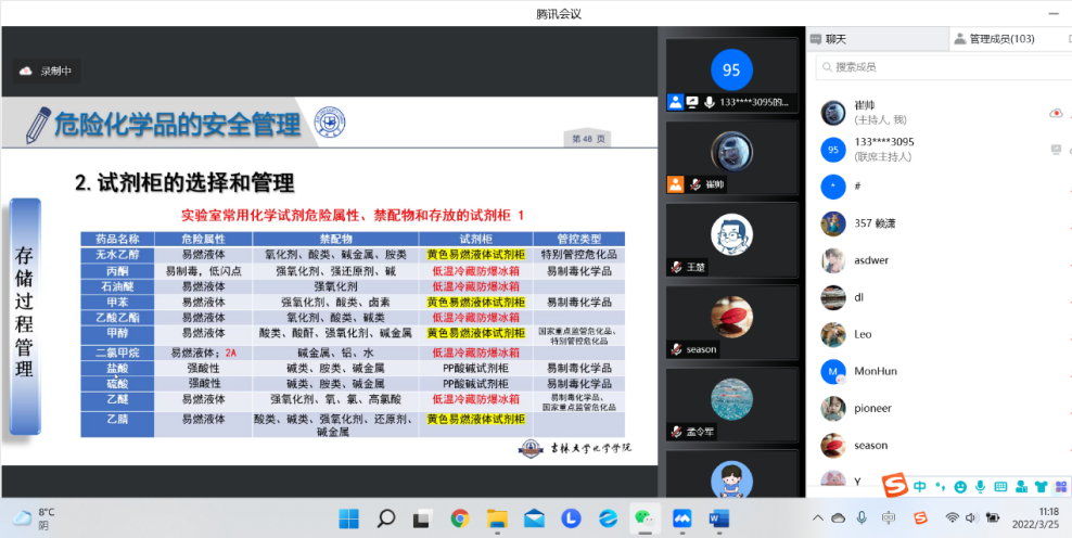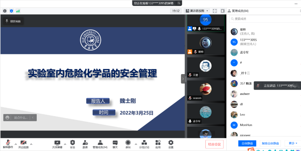 3月25日,邀请太阳成集团tyc234cc化学国家级实验教学示范中心副主任魏士刚研究员做《实验室内危险化学品的安全管理》主题讲座,为下一步公司进行的危化品集中整治工作打下坚实基础。会后,及时向公司师生传达安全管理工作精神。