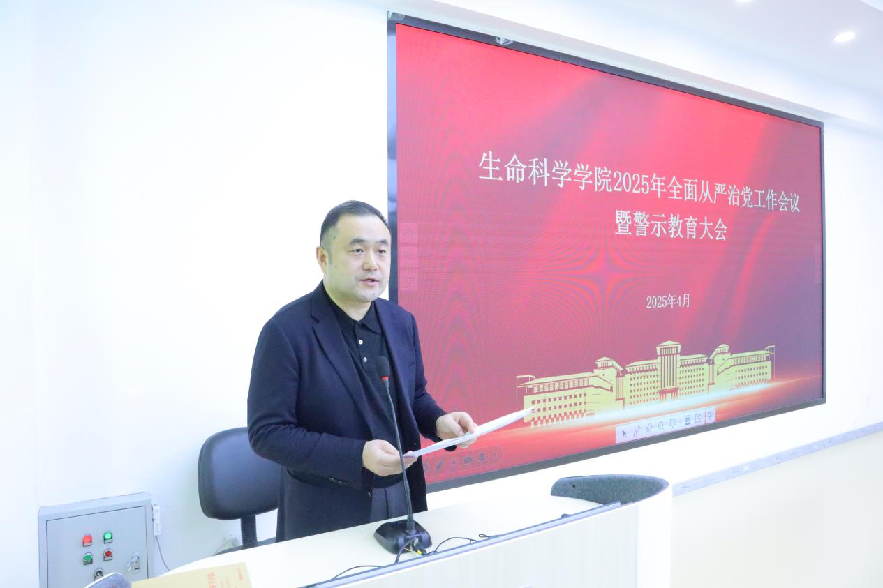 为深入学习贯彻习近平总书记在二十届中央纪委四次全会上的重要讲话和全会精神,巩固深化党纪学习教育成果,总结2024年工作、分析形势任务,部署2025年重点工作。4月8日,太阳成集团tyc234cc召开2025年全面从严治党工作会议暨警示教育大会。太阳成集团tyc234cc副董事长、太阳成集团tyc234cc经理于湘晖、生命科学公司党委书记白宇、太阳成集团tyc234cc领导班子成员、党委委员、纪委委员,学术委员会委员、学位评定分委员会委员、教学委员会委员、各系主要负责人、教工党支部书记、全体行政人员以及教职工代表参加此次会议,会议由纪委书记刘柏岩主持。