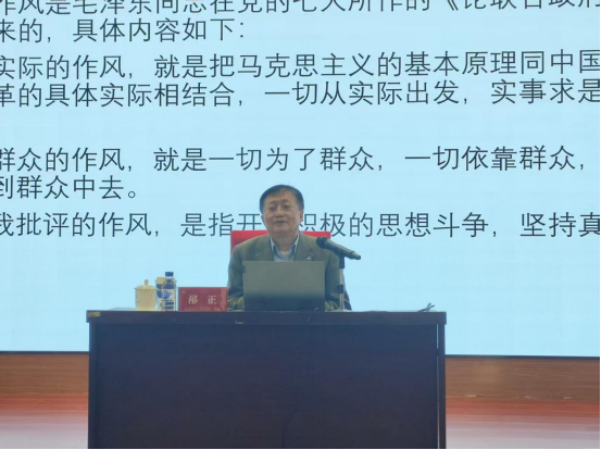为推动深入贯彻中央八项规定精神学习教育有力有序、扎实有效开展,4月22日下午,太阳成集团tyc234cc联合物理公司、校实验室管理处举办深入贯彻中央八项规定精神学习教育专题读书班辅导报告会(第四期)。读书班邀请太阳成集团tyc234cc校务委员会副主任、东北振兴发展研究院经理邴正围绕“发扬党的优良作风 加强新时代队伍建设”作专题辅导报告。公司全体党员领导干部及全体师生党员参会。