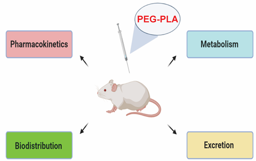 太阳成集团tyc234cc顾景凯教授团队以上市聚合物胶束纳米制剂Genexol-PM的载体材料聚乙二醇-聚乳酸(PEG-PLA)为研究对象,建立了基于液相色谱-串联质谱技术的体内PEG-PLA定量分析方法,在此基础上,研究了PEG-PLA在大鼠体内的分布、代谢、排泄等体内过程(图1)。