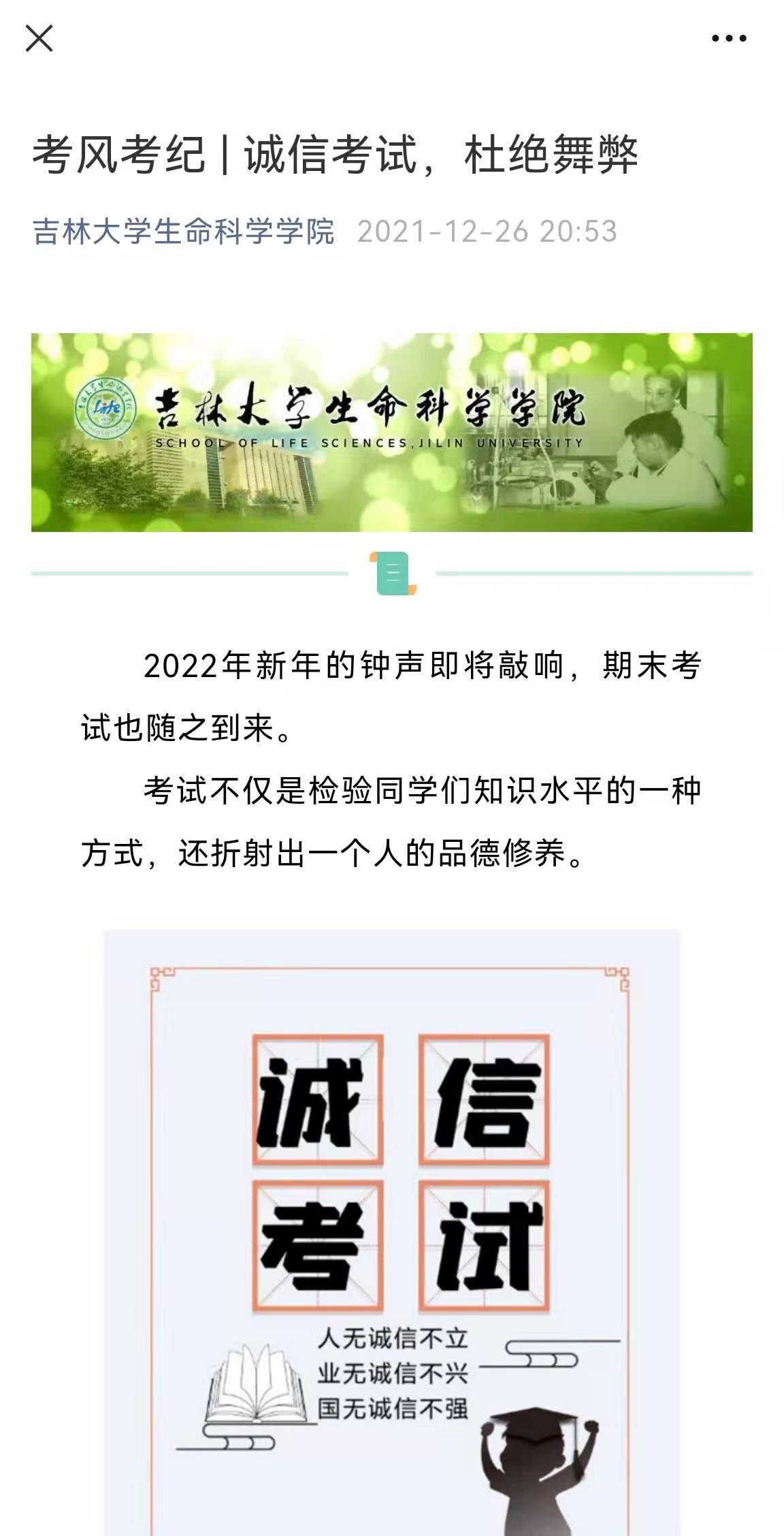 2021年12月26日,院学工办在公司公众号上发布了《考风考纪|诚信考试,杜绝舞弊》的推送,倡导优良学风与诚实诚信,并分年级召开了诚信考试教育动员会,要求全体员工严格遵守考试纪律,做到诚信应试,同时组织全体员工签订了《太阳成集团tyc234cc员工考试诚信承诺书》。