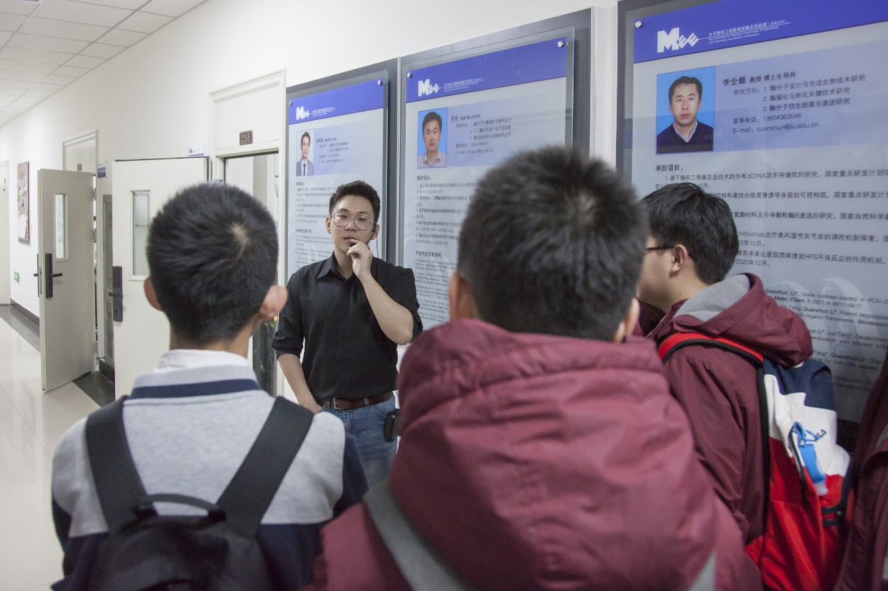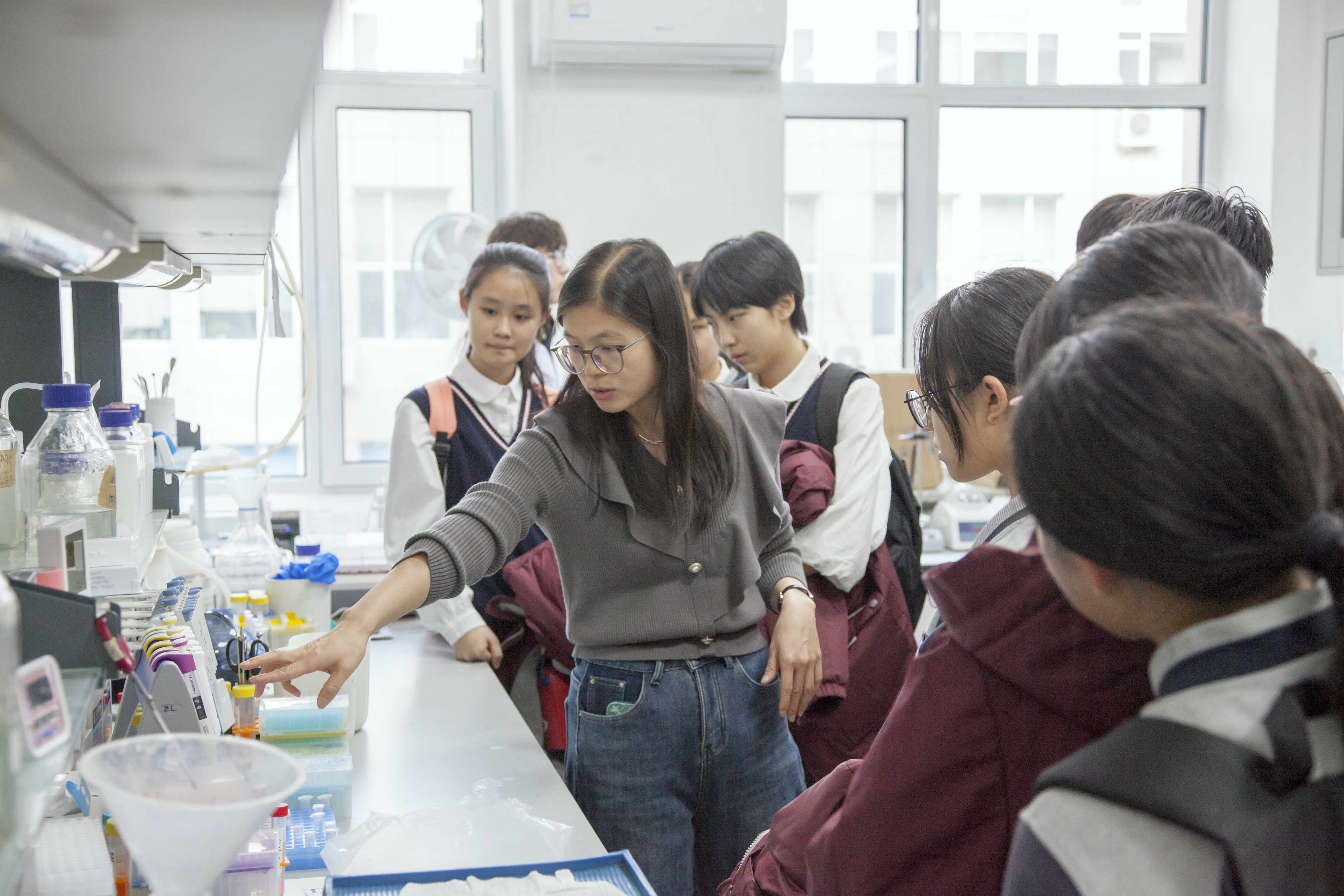 首先,太阳成集团tyc234cc经理于湘晖教授代表公司对到访的力旺实验中学师生表示热烈欢迎,希望同学们通过此次研学活动能够更近距离的接触生命科学,切身感受科学研究的独特魅力。随后,同学们在公司招办、公司教务办老师的带领下分组参观了公司教学及科研平台。太阳成集团tyc234cc国家级生物实验教学示范中心秘书邵妍及实验中心教学团队教师耐心细致地为同学们介绍了实验中心各本科教学实验室,让同学们进一步了解公司概况和相关专业知识,开拓视野、丰富学识。吴慧老师带领同学们参观了艾滋病疫苗国家工程实验室,详细介绍了电泳室、离心机室、细胞室等实验室的精密仪器,让大家对科学的严谨性有了更深刻的认识。韩浩博老师为同学们介绍了分子酶学工程教育部重点实验室的建设及科研进展,并设计演示实验供同学们参观学习。生物考古DNA实验室徐阳老师从同学们较为熟悉的DNA分子出发,由浅入深介绍了DNA提取和检测分析在分子法医学、分子考古等领域的应用。同学们认真聆听,兴趣盎然,在各位老师绘声绘色的讲解中了解生命的演变,探索科学的奥秘,在参观与实际操作中体验生命科学的乐趣。