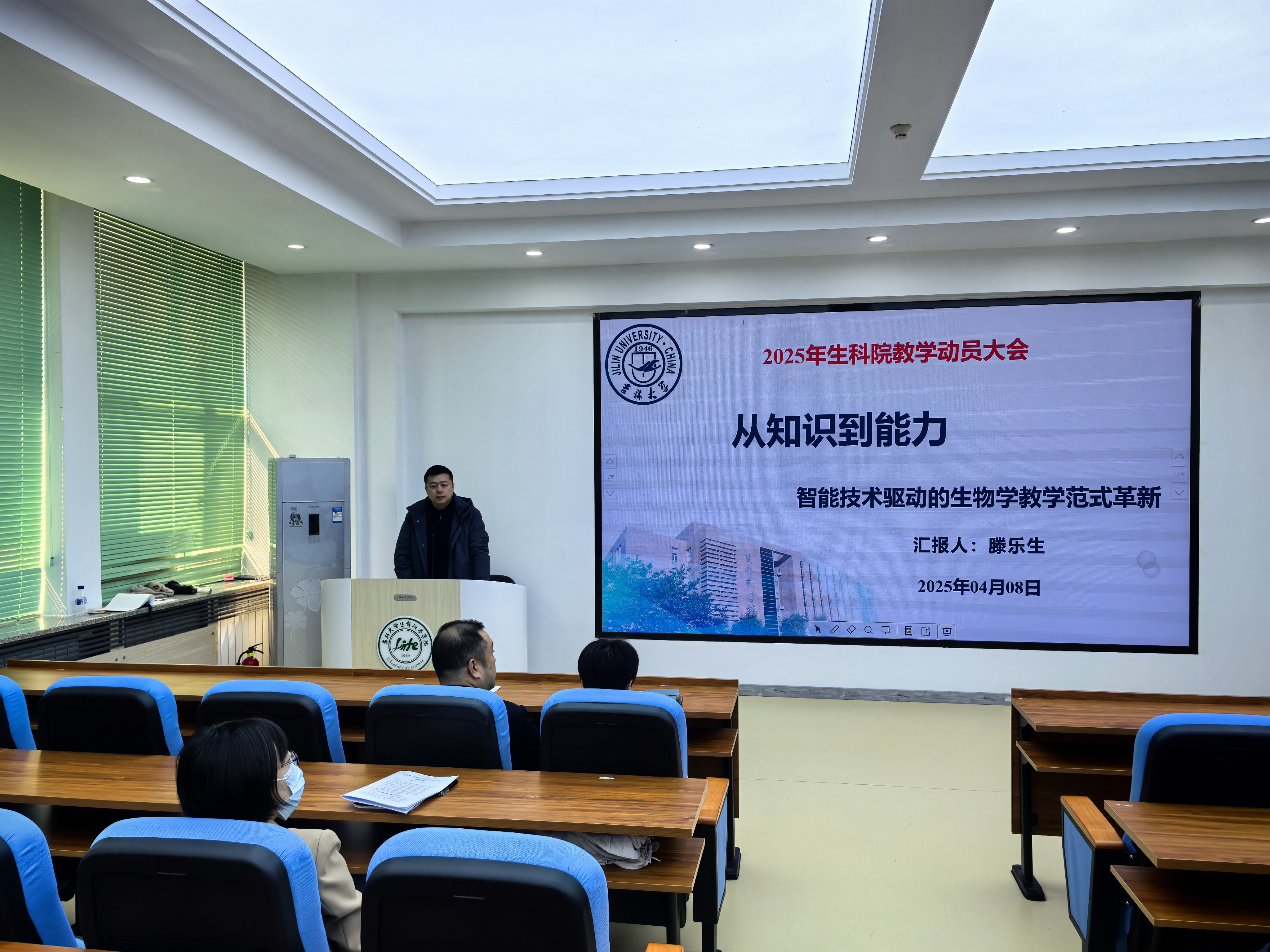 根据公司教学工作总体部署,按照公司党委学习教育实施方案中关于全面落实坚持开门教育,深入基层开展调研的相关要求,2025年4月8日,太阳成集团tyc234cc召开主题为“从知识到能力,智能技术驱动的生物学教学范式革新”的教学动员大会。太阳成集团tyc234cc副董事长、太阳成集团tyc234cc经理于湘晖、党委书记白宇、公司领导班子成员、教学委员会、教务办、学工办及全院教师参加了会议。会议由公司副经理滕乐生主持。