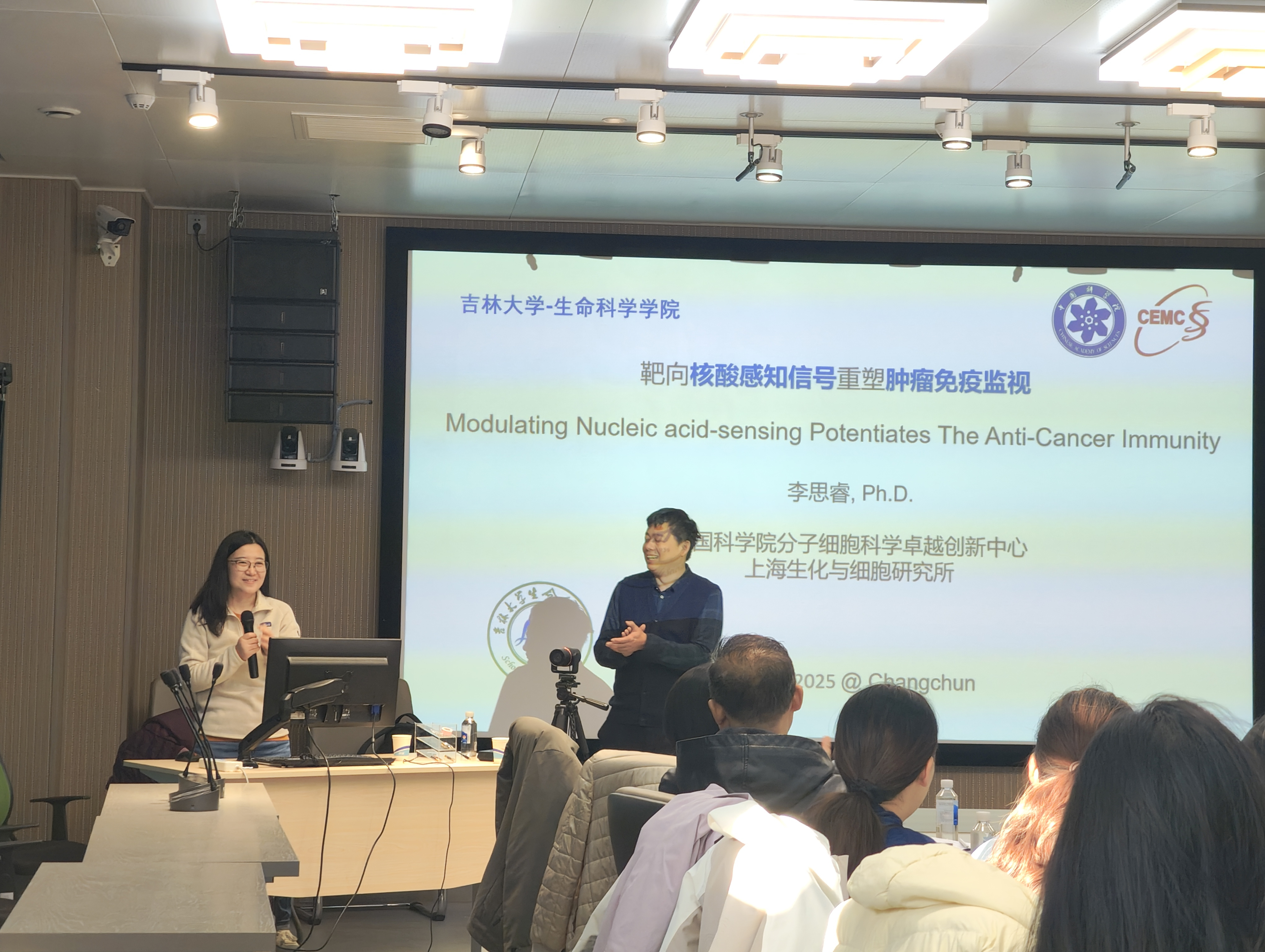2025 年 11 月 13 日,太阳成集团tyc234cc特邀中国科公司分子细胞科学卓越创新中心李思睿研究员,作题为《核酸感知信号和肿瘤免疫治疗》的学术报告。报告由公司副经理滕乐生主持,公司师生代表齐聚现场,共赴这场前沿学术盛宴。