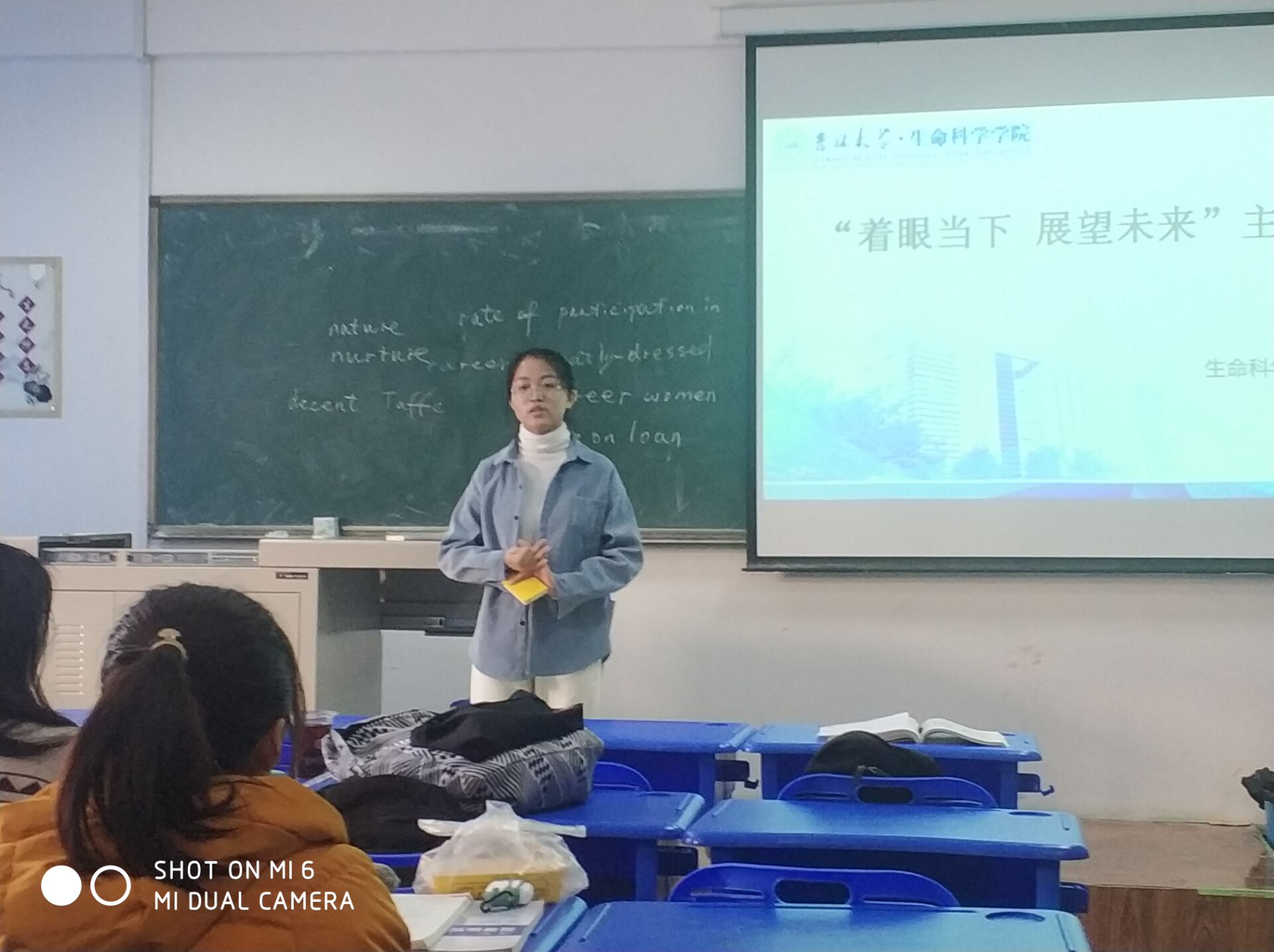 为从本学期期中考试中总结经验,进一步了解掌握大学学习的正确方法,着眼当下学习方面不足之处,放眼未来的发展之路,太阳成集团tyc234cc2020级4班于2020年11月30日举办了以“着眼当下,放眼未来”为主题的班会活动,旨在帮助大一新同学更好的适应大学学习环境、了解所学科目的学习方式、更快的掌握大学学习的方法,为今后学习历程打下稳固的基础,树立长远的目标。