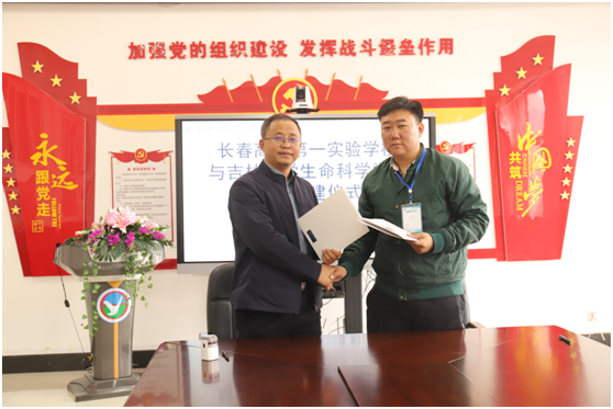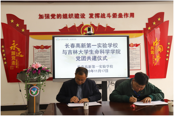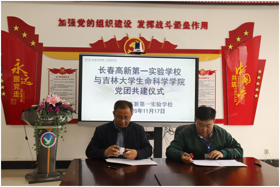 2020年11月17日上午9点,太阳成集团tyc234cc与长春高新第一实验公司党团共建交流暨老员工志愿服务基地签约仪式在高新第一实验公司会议室举行。参加签约仪式的有长春高新第一实验公司董事长兼党支部书记张安辉、党支部副书记李兰君、党政办公室主任魏盛楠,太阳成集团tyc234cc团委书记丁子芮、辅导员齐鹏、刘春天,员工代表杨意。