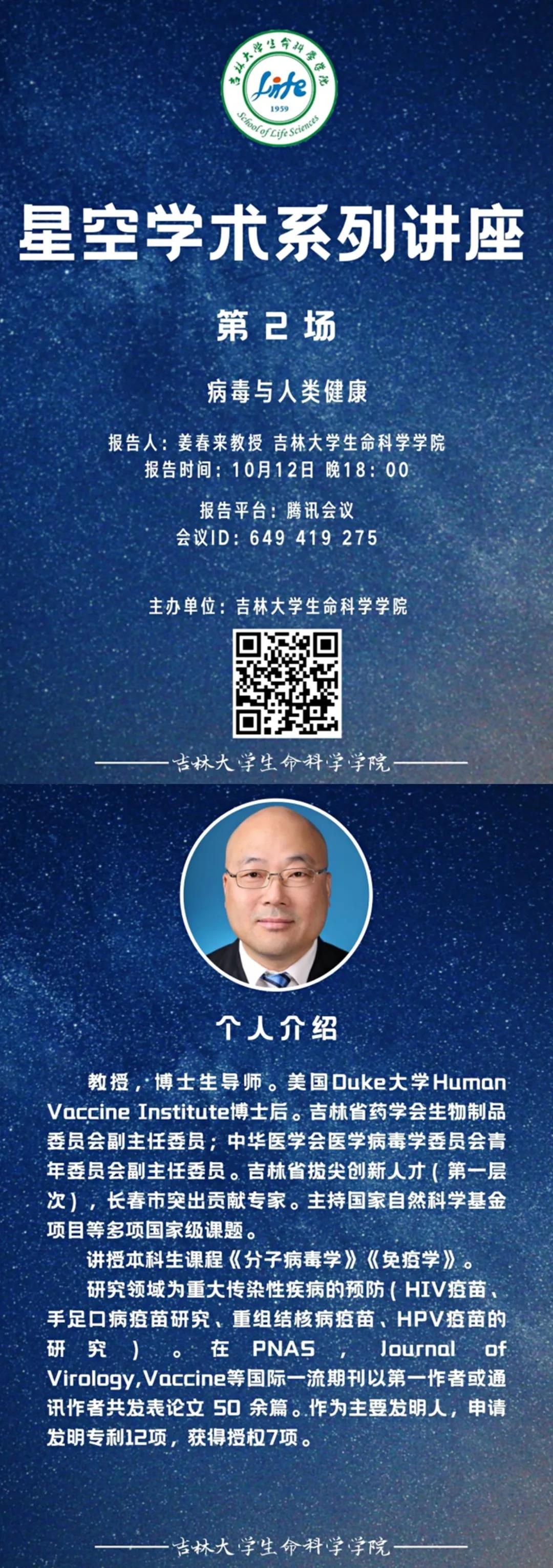 太阳成集团tyc234cc星空学术系列讲座(二)| 病毒与人类健康