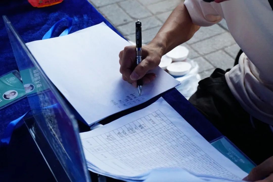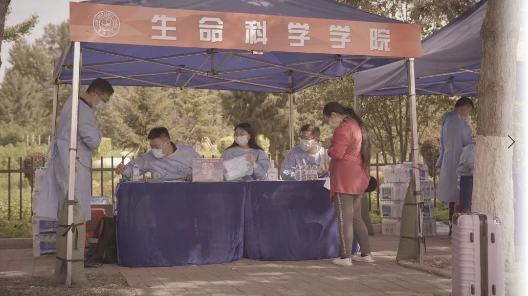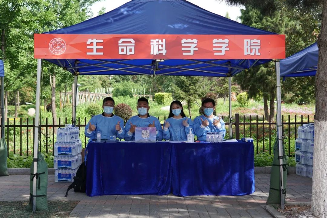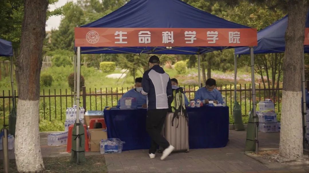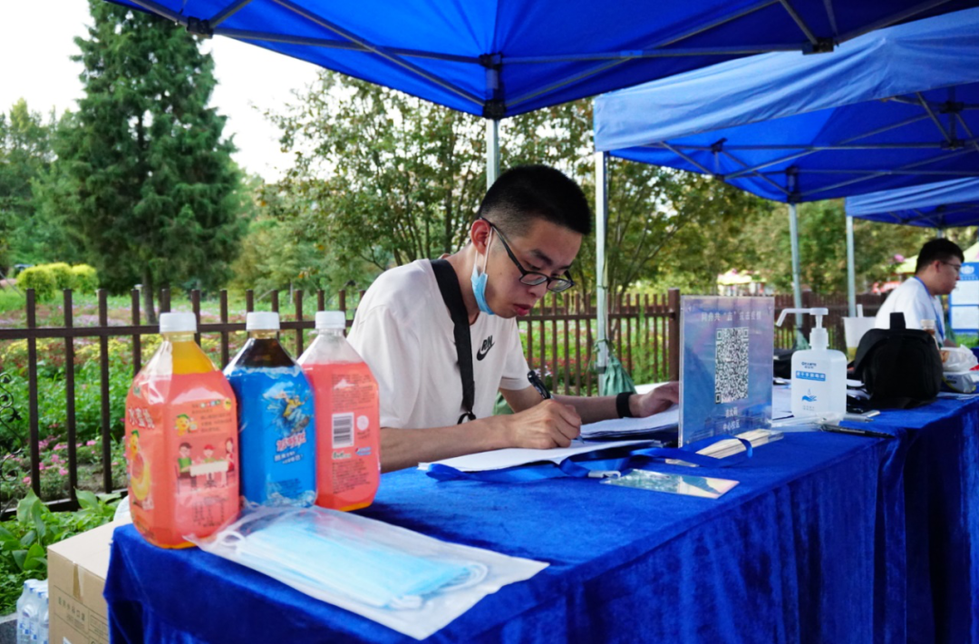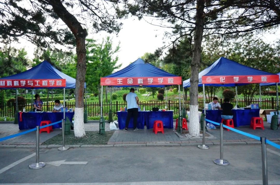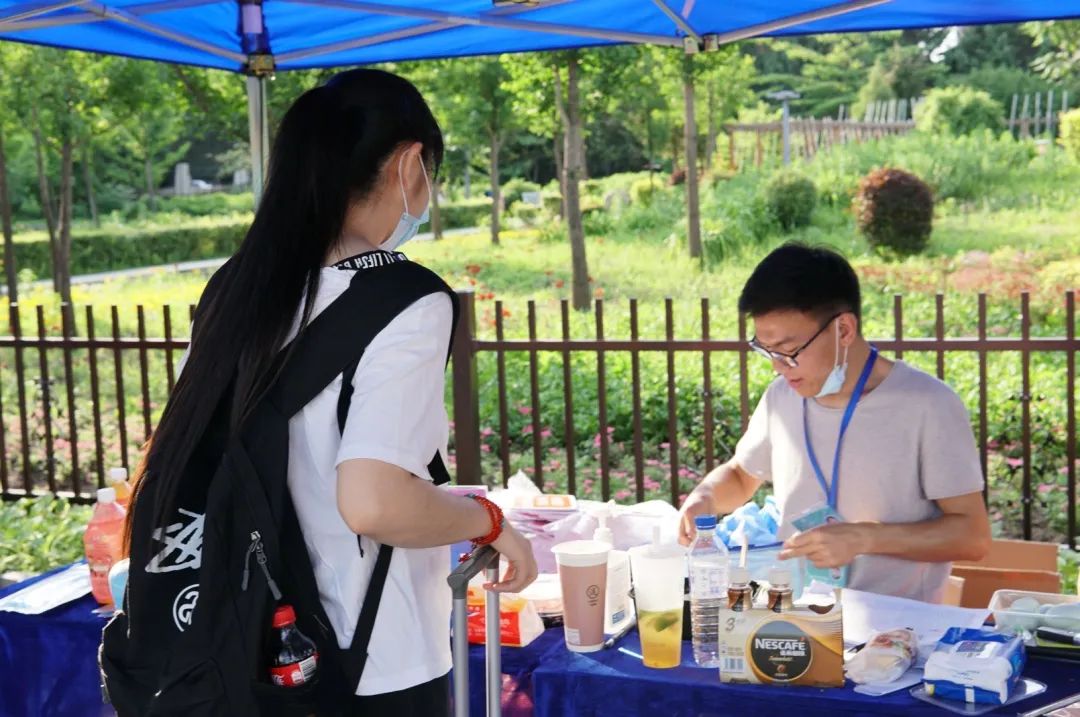 公司党委副书记崔帅、2016级辅导员马莹、2019级辅导员齐鹏、辅导员刘春天四位老师早早地就在北门搭起了接待棚