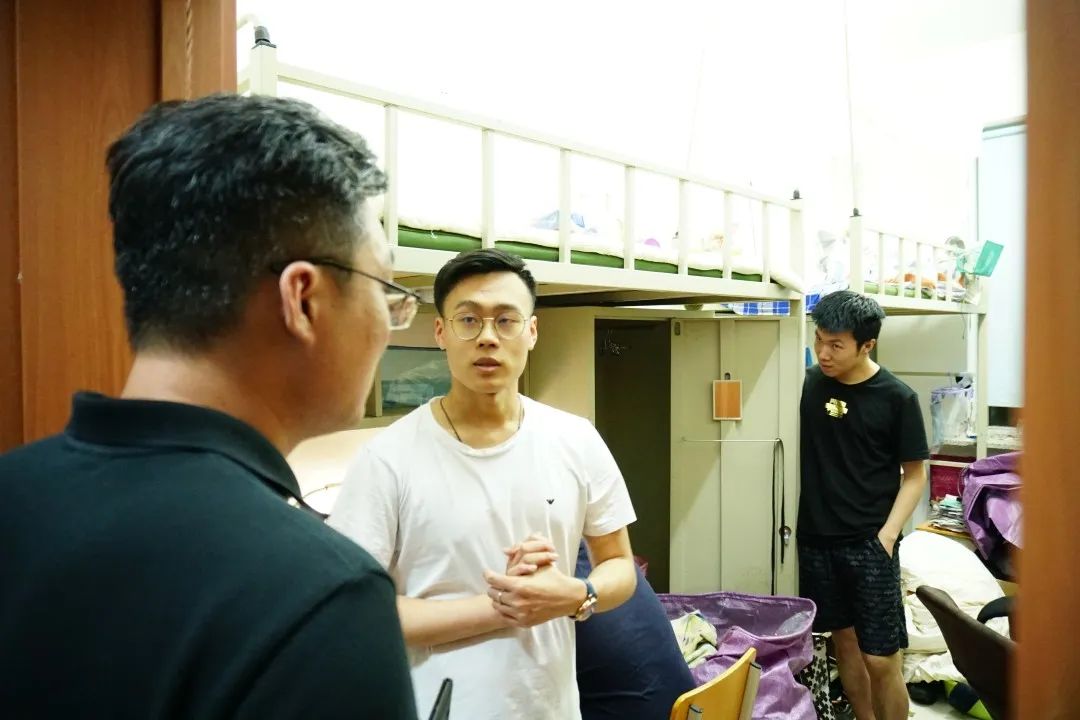为了了解公司2020届本科毕业生返校后的住宿饮食、行李打包整理等情况,2020年6月28日晚上20点,生命科学公司党委副书记崔帅、2016级辅导员马莹、2019级辅导员齐鹏分别前往南苑四公寓和北苑二公寓走寝慰问返校毕业生,2020届毕业生余戎镇和申浩阳随行。