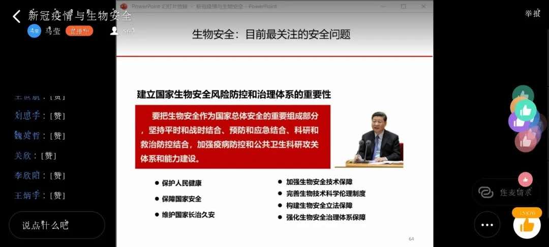 此次疫情,让全世界人民认识到生物安全的重要性。郭老师在讲述完疫情故事后,向同学们讲解了生物安全方面的知识。通过郭老师的讲解,同学们对于生物类专业有了更大的信心,同时,同学们深以学了生物类专业为豪。