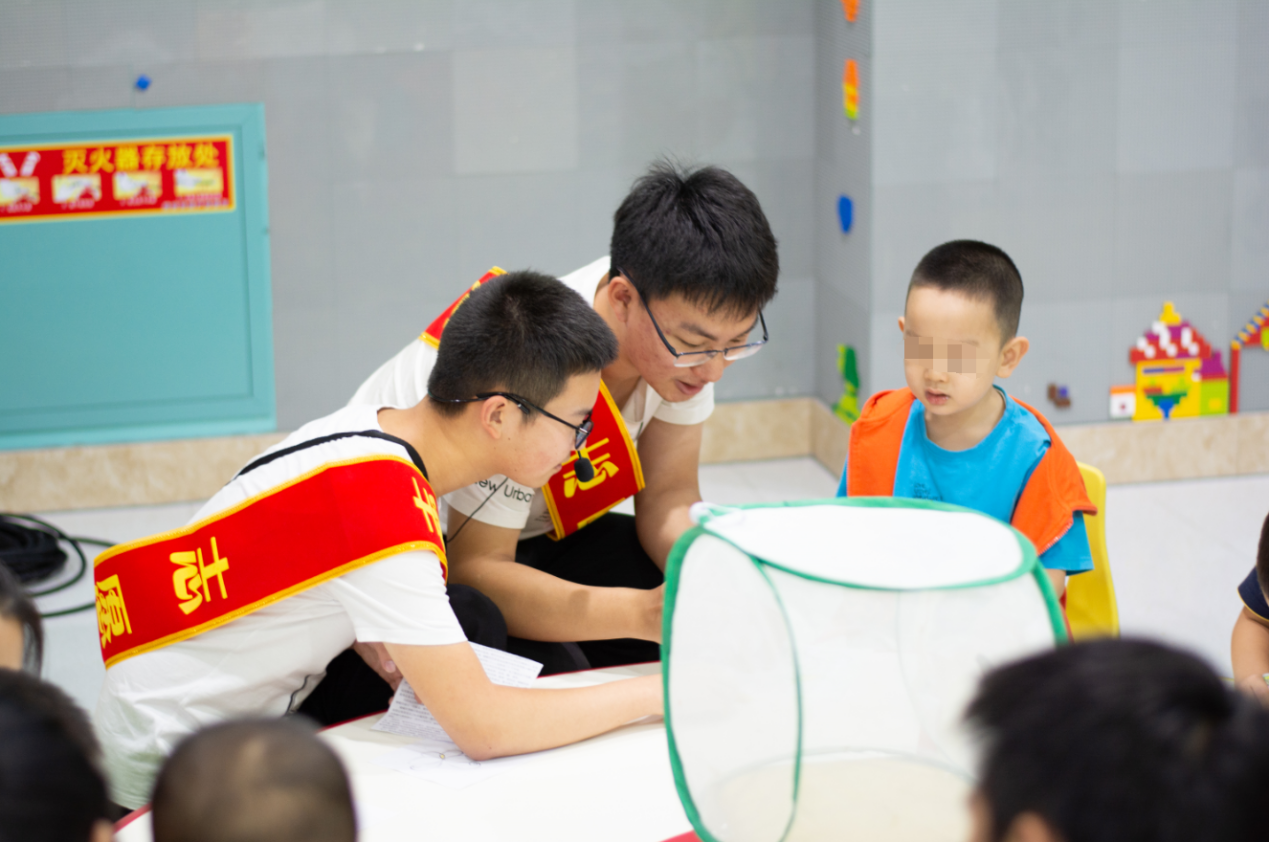面对各种颜色、大小不一的蝴蝶标本,小朋友们睁大了眼睛仔细观察,争先恐后的去问志愿者大哥哥,这个是什么蝴蝶,那个又是什么蝴蝶,志愿者们耐心的一一进行讲解。有一些小朋友甚至激动地用手拍展示台的玻璃,也有一些小朋友关注活体蝴蝶,持续地晃动着网笼,场面充满欢声笑语。