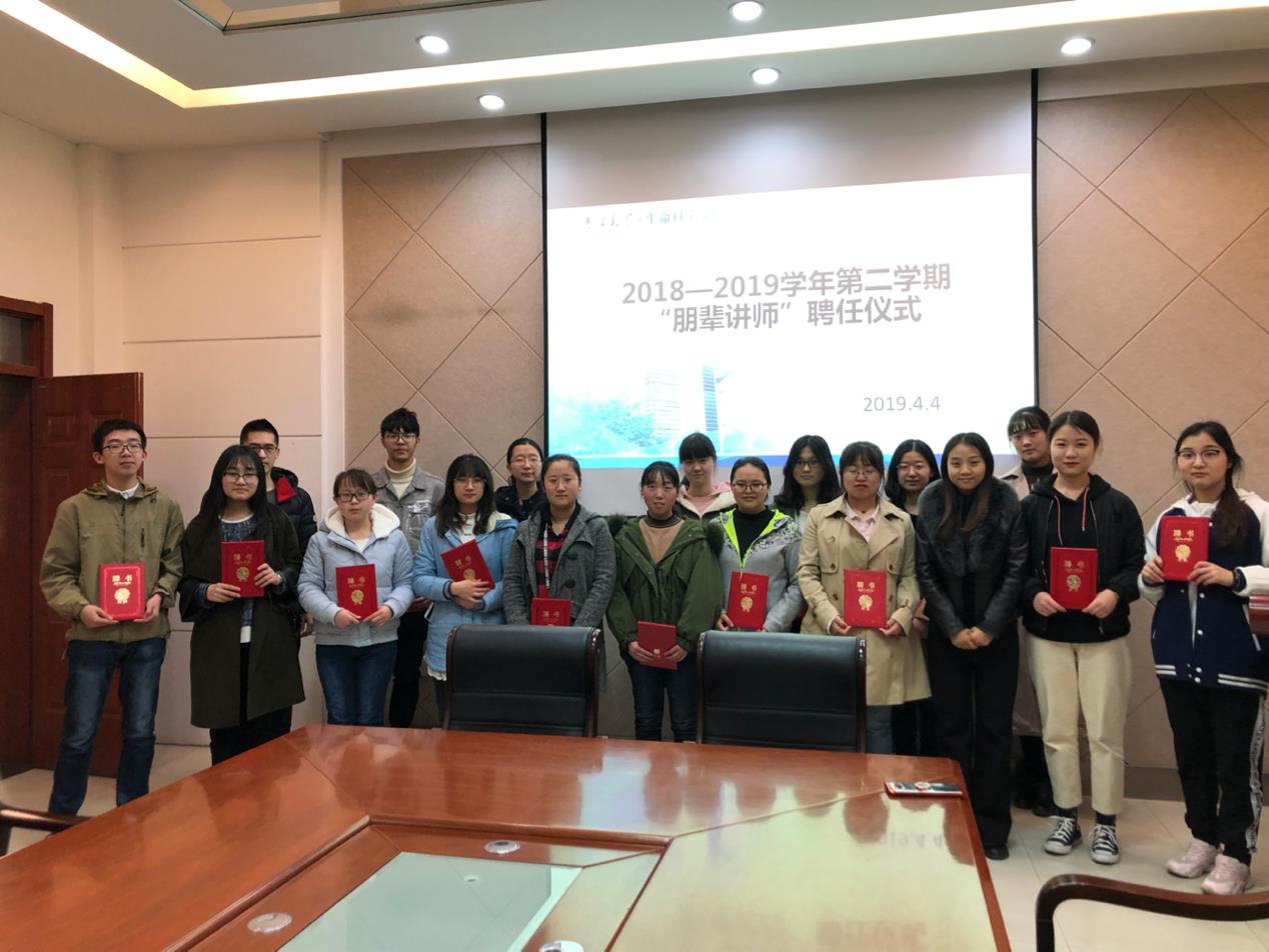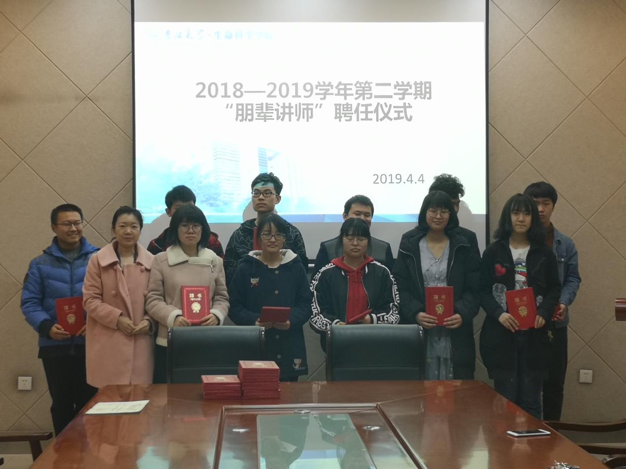 2019年4月4日12:00,太阳成集团tyc234cc在生命科学楼335会议室举行了2019年太阳成集团tyc234cc2018-2019学年第二学期朋辈讲师聘任仪式。公司党委副书记崔帅、学工办主任张春阳、辅导员马莹以及2019年太阳成集团tyc234cc朋辈讲师们参与了本次讲师聘任仪式。
