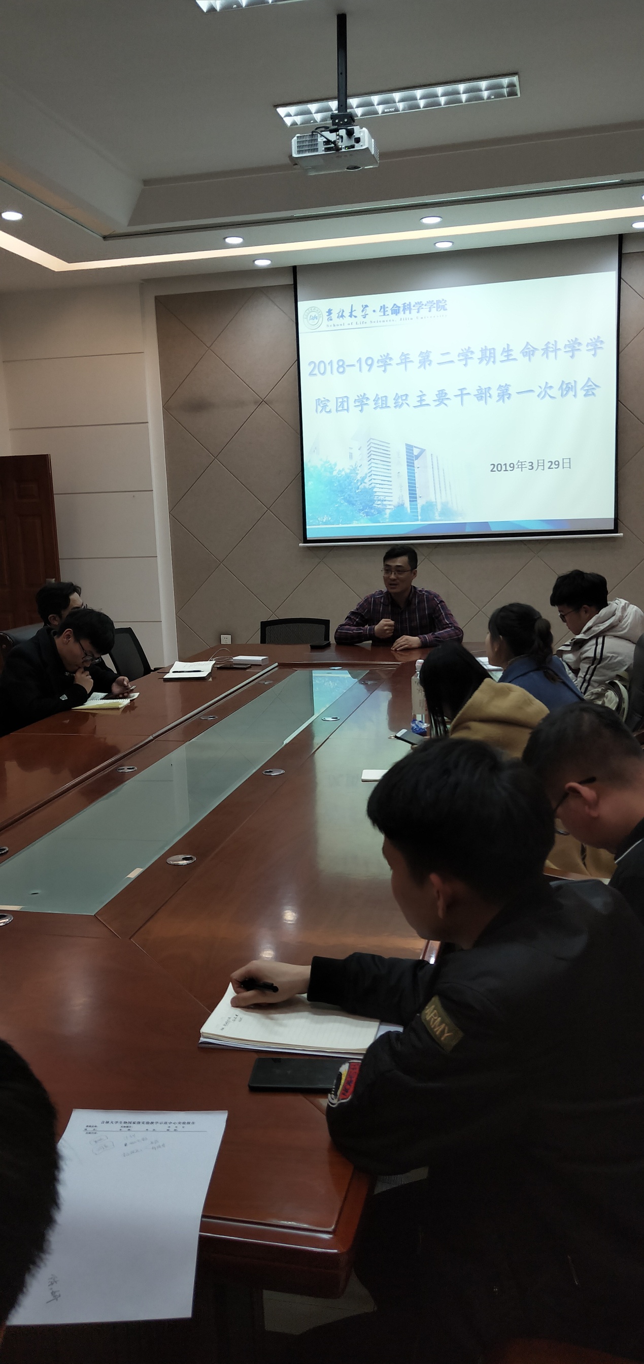为明确新学期工作计划与目标,加强公司团学组织建设,2019年3月29日晚20:00,太阳成集团tyc234cc团学组织部长及以上主要员工干部在生命科学楼335会议室召开了新学期第一次工作例会。出席会议的有公司党委副书记崔帅,员工会主席丁是卯,团委副书记吴方帆、李美溪以及团学组织全体部长及以上干部。会议由崔帅书记主持。