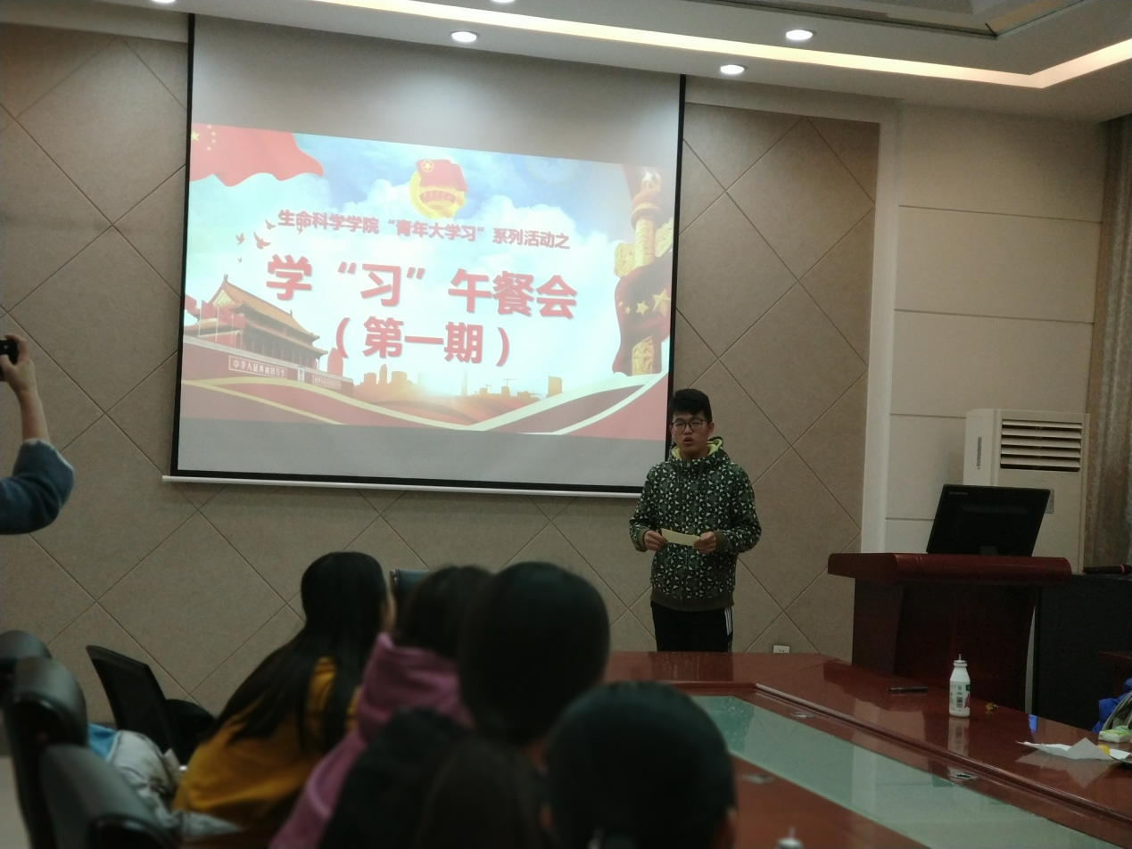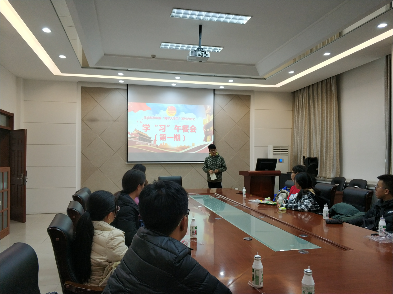 为了积极响应团中央提出的“让广大青年敢于有梦,勇于追梦,勤于圆梦。”培养新时代中国特色社会主义好青年,贯彻落实习近平总书记对于广大青年寄予的厚望,11月19日上午12点,太阳成集团tyc234cc入党积极分子在生命科学楼335会议室开展了“青年大学习”之学“习”午餐会。院团委书记丁子芮老师和团委副书记吴方帆担任主讲人,太阳成集团tyc234cc入党积极分子参加会议并交流学习心得。