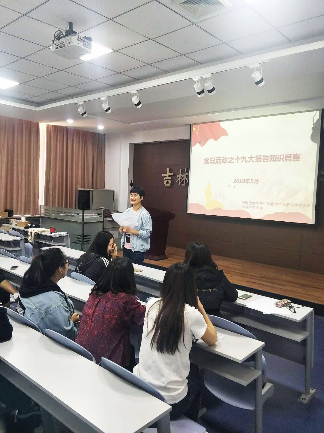 为进一步增强员工党员对十九大报告的学习热情,检验学习成效,提高员工党员理论水平,有效提升员工党支部的组织力,生命科公司本科生党支部联合研究生党支部于5月25日下午在生命科学楼107室举行“十九大报告知识竞赛”党日活动。细胞生物学与生物物理学系研究生党支部书记邹丽云老师主持本次竞赛。