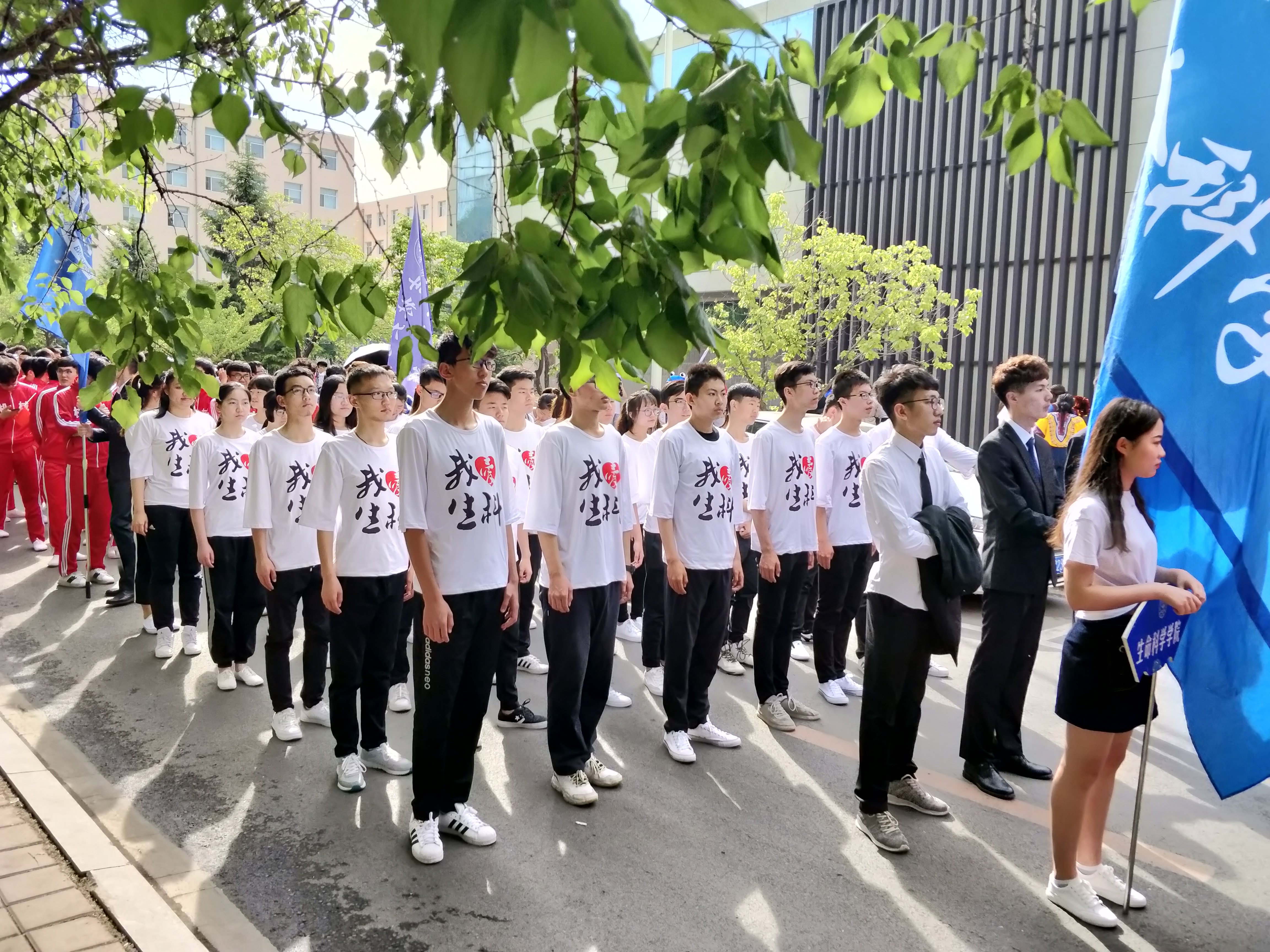 在运动会筹备期间,来自公司的几十名本科员工自愿报名参加了运动会方队,一番严格挑选后,留下了36名方队人员。经过了多个夜晚的训练与磨合,他们顶住了深夜的凉风和疲惫,重复了几十次几百次的动作;他们同心协力,共同进步,争取每一个步伐到做到完美,每一个动作都做到极致。终于,他们整齐划一的挥臂映入眼中,标准统一的正步令人羡慕。在运动会当天,方队同学们用他们神采奕奕的身姿体现了生科院的风貌,用他们英姿飒爽的步伐显示了属于他们的青年精神。