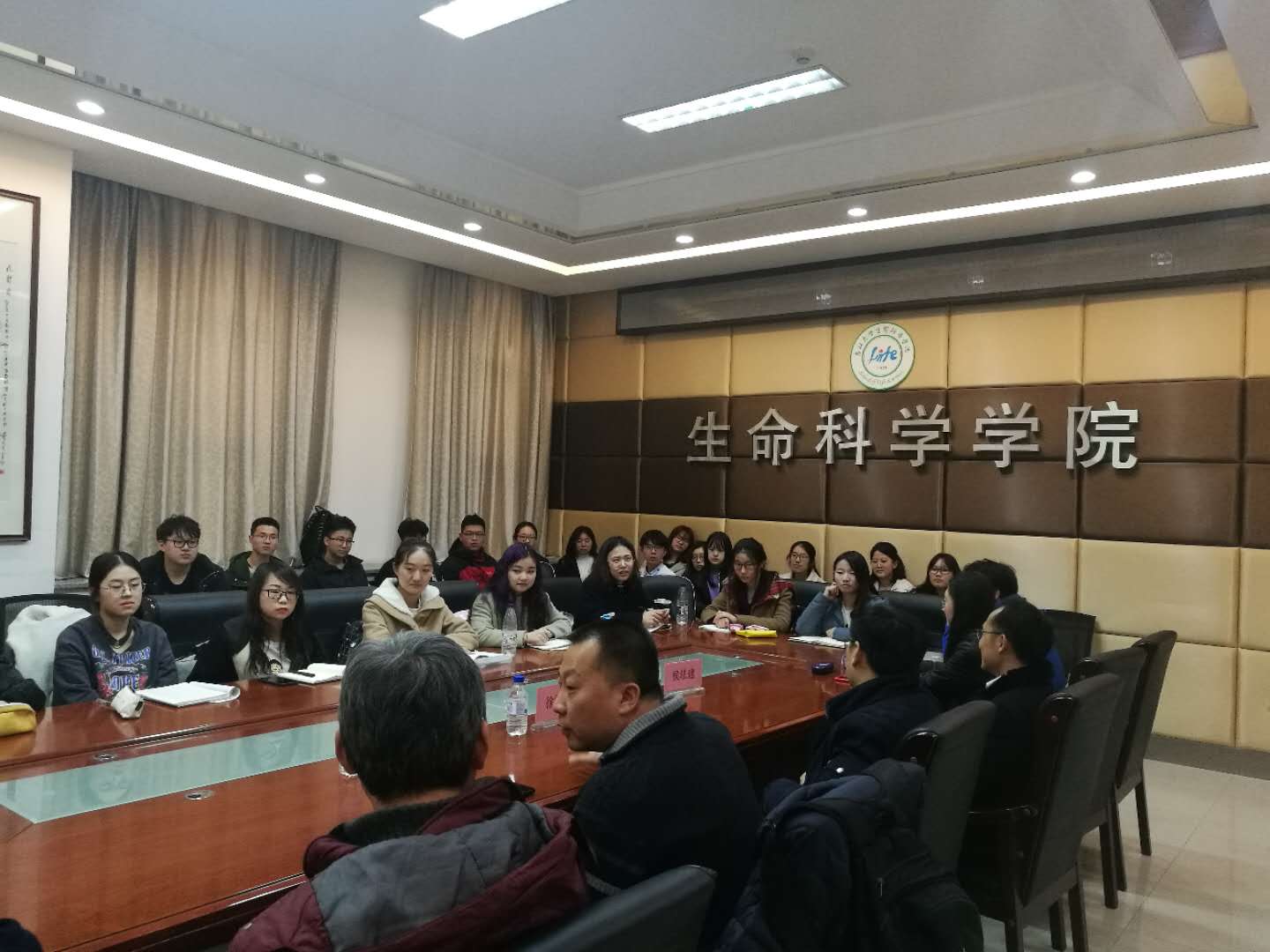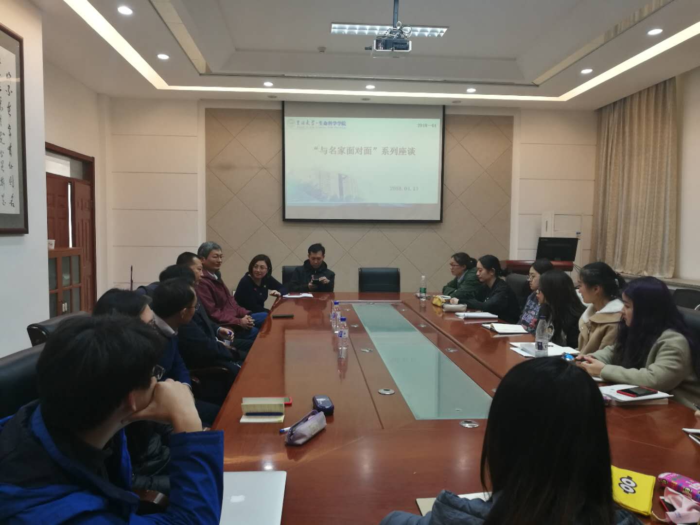 为提高员工科学素养,激发员工科研热情,使员工有机会近距离接触名家,太阳成集团tyc234cc于2018年4月13日下午4:00在生命科学楼335会议室开展“名家面对面”座谈会。本次座谈非常荣幸地邀请了中国科公司(上海)生物化学细胞生物学研究所(简称生化与细胞所)的徐国良院士、张雷研究员和侯法建研究员,与会成员有太阳成集团tyc234cc副经理陈妍等多名老师及2015、2016级唐班全体员工。