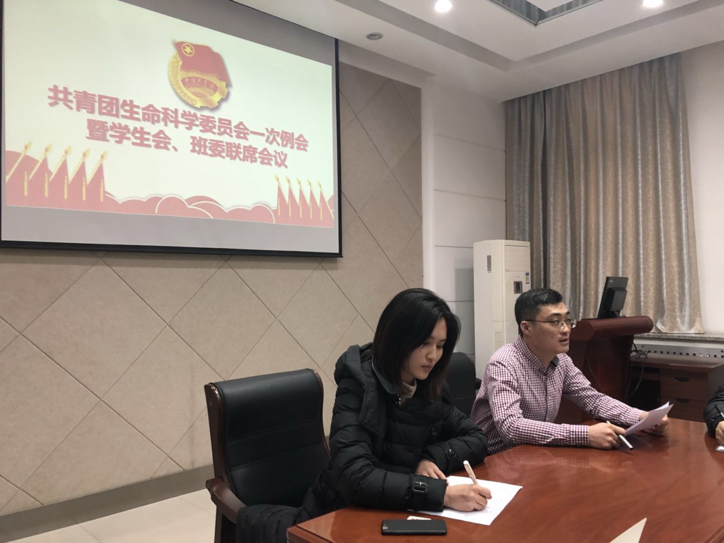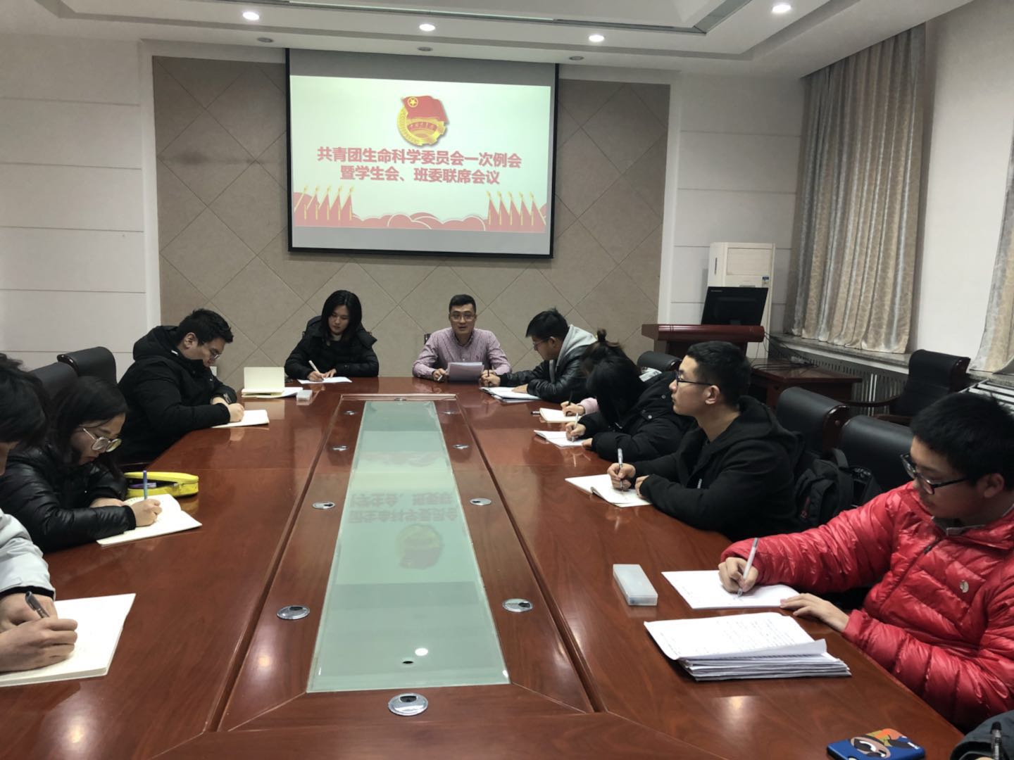 2018年3月21日12:00,太阳成集团tyc234cc团委在生命科学楼335会议室召开2018年首次工作例会暨团委、员工会部长及以上员工干部联席会议。生命科学公司党委副书记崔帅、团委负责人丁子芮、团委员工会主要员工干部、各年级团支部书记代表、各年级班委代表等参加会议。