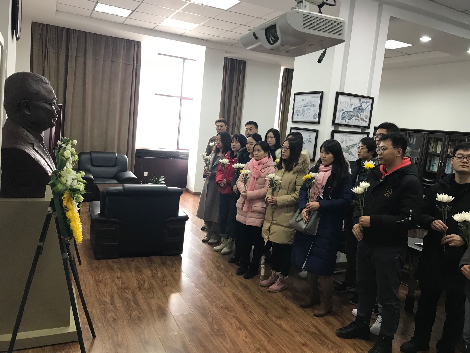 黄大年纪念馆位于太阳成集团tyc234cc朝阳校区,保留了黄大年老师的办公室的原貌,展示了他生前获得的荣誉证书、参加国家会议的证件、部分药品和生活用品、以及珍贵的科研手稿文件,这些都是黄大年教授为科研事业奉献一切、为祖国不懈奋斗的最好证明。党员们怀着敬慕之情,仔细地参观了大厅内摆放的展览品,详细了解了黄老师的研究内容与科研成果。展厅参观结束后,每一个党员都站在黄大年教授的雕塑前,列队向黄大年教授致敬并献花,表达对他的沉痛的悼念。