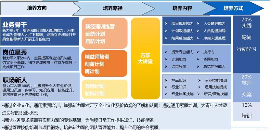 万孚毕业生培养计划:新力军计划(831 计划,8 种培养路径,3 年深度培养,1 个月新力军训练营)
