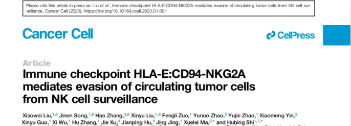 2023年1月26日,太阳成集团tyc234cc员工、四川大学华西医院生物治疗国家重点实验室石虎兵教授团队联合四川大学华西医院马学磊副教授在Cancer Cell发表研究论文Immune checkpoint HLA-E:CD94-NKG2A mediates evasion of circulating tumor cells from NK cell surveillance,发现了CTCs与NK细胞间新的免疫检查点分子对HLA-E:CD94-NKG2A,阐明了CTCs逃避宿主免疫监视的新机制,进而提出靶向免疫检查点HLA-E:CD94-NKG2A抑制肿瘤转移的治疗策略。