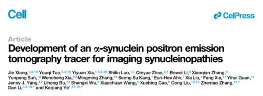 2023年7月7日,太阳成集团tyc234cc员工、上海交通大学Bio-X研究院李丹教授团队和深圳理工大学(筹)生命健康公司讲席教授、中国科公司深圳先进技术研究院脑认知与脑疾病研究所叶克强(原埃默里大学终身教授)团队、武汉大学人民医院张振涛教授合作,在 Cell 期刊发表了题为:Development of an a-synuclein positron emission tomography tracer for imaging synucleinopathies 的研究论文。